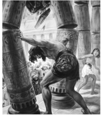 Samson grew up to be a powerful man but eventually, he was tricked by a woman and captured by the Philistines, the enemies of the children of Israel. They were cruel, they made Samson go blind in both eyes and during their celebration party, they wanted to make fun of blind Samson. So they sent a lad (a young boy) to lead Samson from the prison. The lad could be one of the slaves and an Israelite, like Samson. Samson asked the boy to help him touch the middle pillars of the building ( Judges 16:26).
