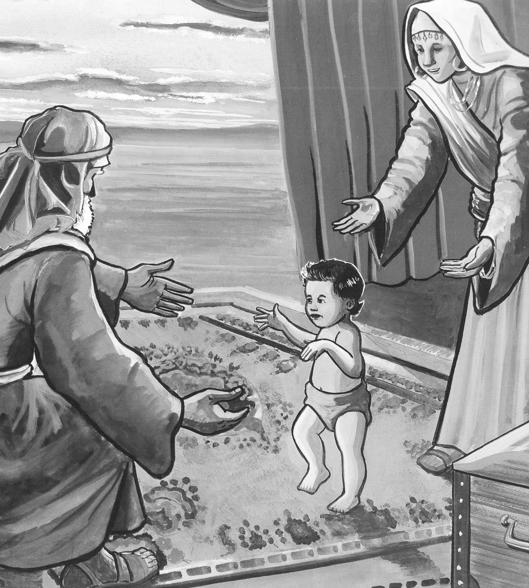 Abraham and Sarah did have a son. Isaac was born when Abraham was 100 years old and Sarah, 90. Look at the picture again and imagine baby Isaac in the wrinkled arms of his parents.
