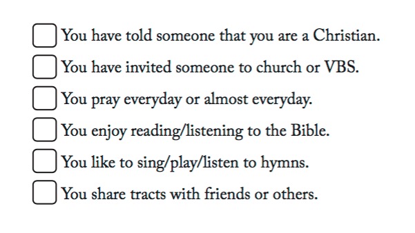 If you are saved, you would have done some of these things. Put a tick if you do.