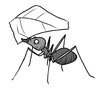 Here is a giant ant. Draw many small ants hurrying in a line behind it.